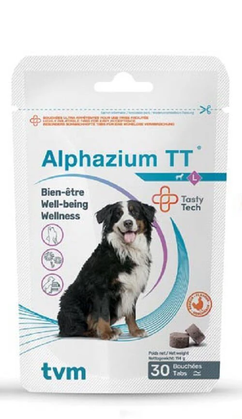 Alphazium TT est un complément alimentaire sous forme de bouchée appétente pour les chats et les chiens stressés, peureux ou agités. Alphazium TT peut être donné avant une situation stressante : trajet en voiture, visite chez le vétérinaire, … Afin de rassurer et calmer votre animal.